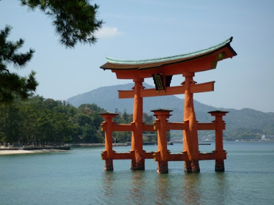 Je traine au lit, douche, puis tramway jusqu'à Miyajima-Guchi où je prends un ferry dans la mer intérieure du Japon pour Miyajima et son Torii flottant: